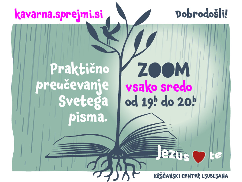 Vsako sredo od 19.00 do 20.00 se nam lahko pridružite na praktičnem preučevanju Svetega pisma.